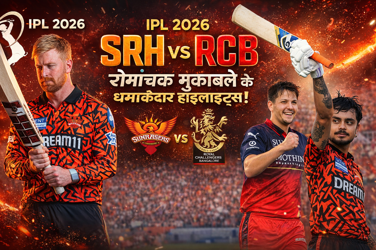 आईपीएल 2026 का पहला मुकाबला RCB और हैदराबाद (SRH) के बीच M. Chinnaswamy Stadium में खेला गया। RCB ने टॉस जीतकर पहले गेंदबाजी करने का फैसला लिया।